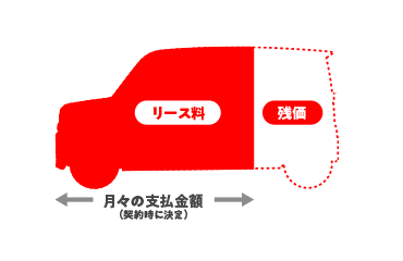 車両のリース契約時にリース満了時の予想残価(つまり数年後の車両の価格)を算定し、残価分はリース支払い金額に参入せず