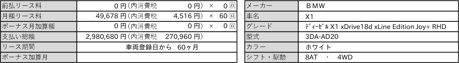 5年リース 月々49,678円 リースアップ時残価設定1,406,099円