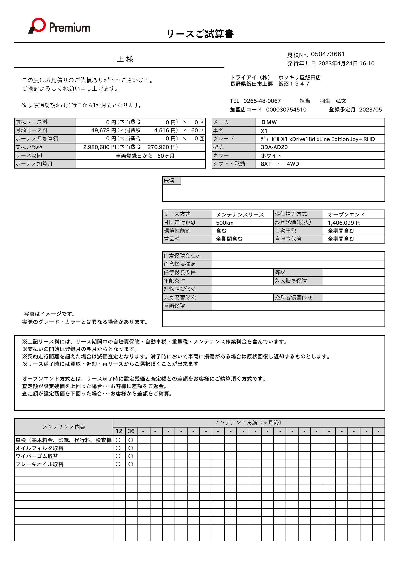 データに基づいた残価設定金額以上の残価設定は基本的にはお受けできません