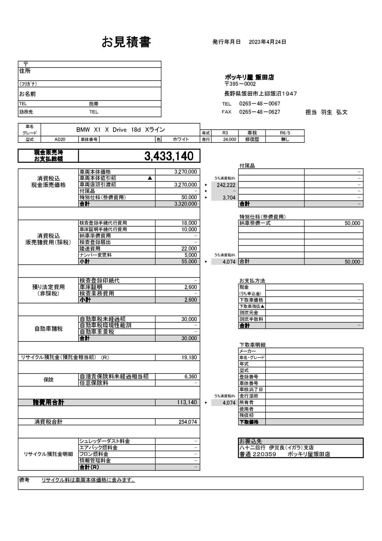 BMW X1 X Drive 18d Xライン R3年 走行距離24000キロ 白