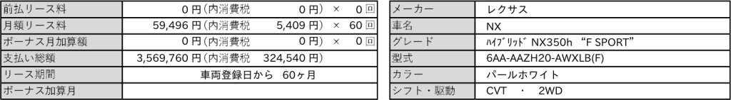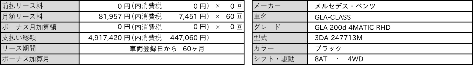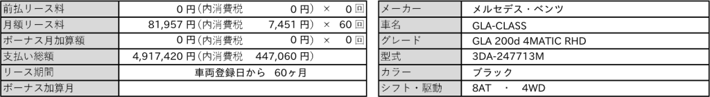 5年リース 月々81,965円 リースアップ時残価設定1,221,818円